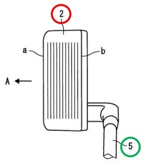 請求項1:フェース部2がシャフト5およびネック部3の前方(図における左側)に設けられている(図1,図4参照)。
